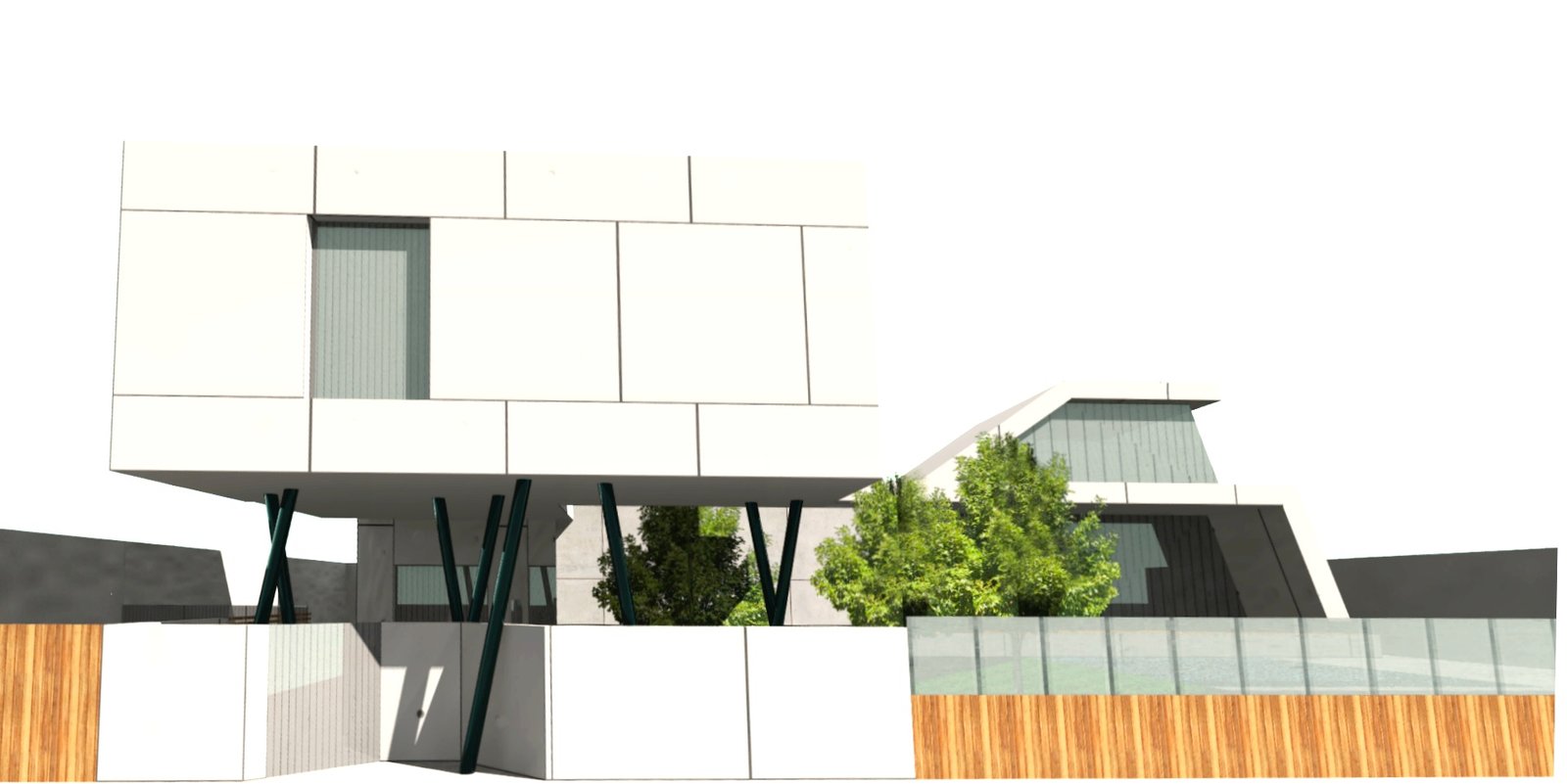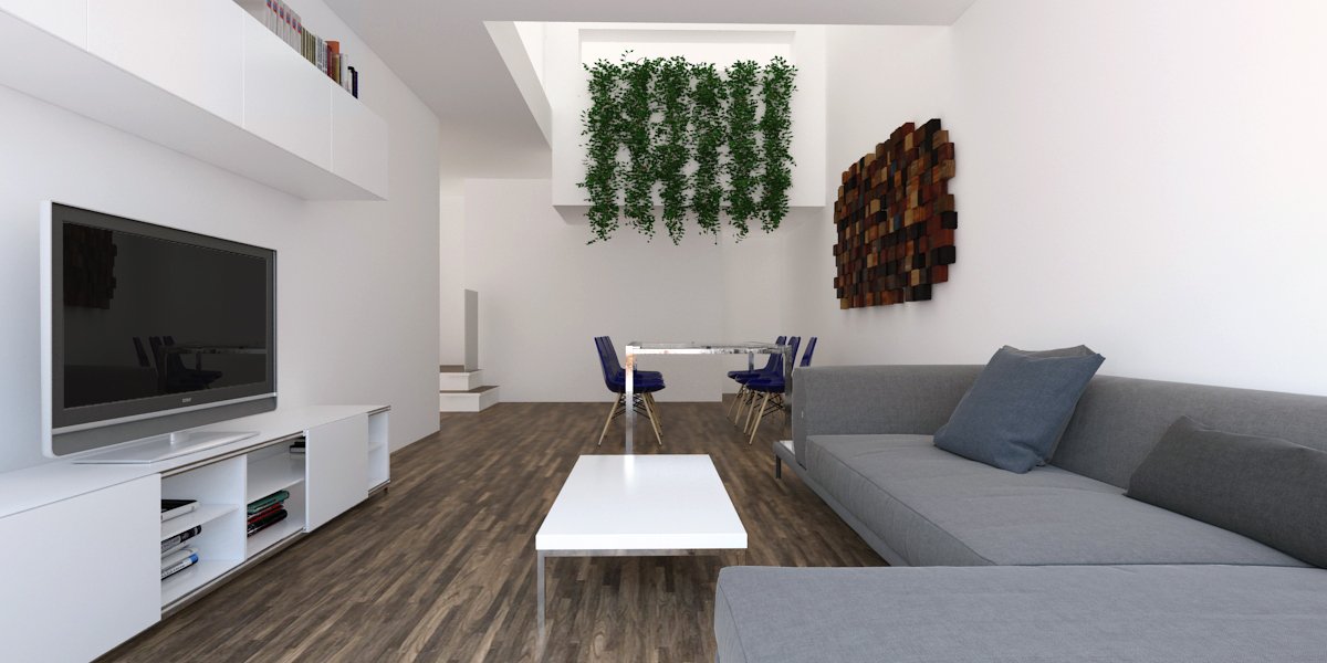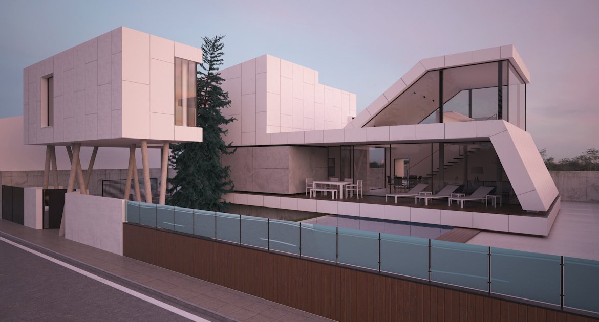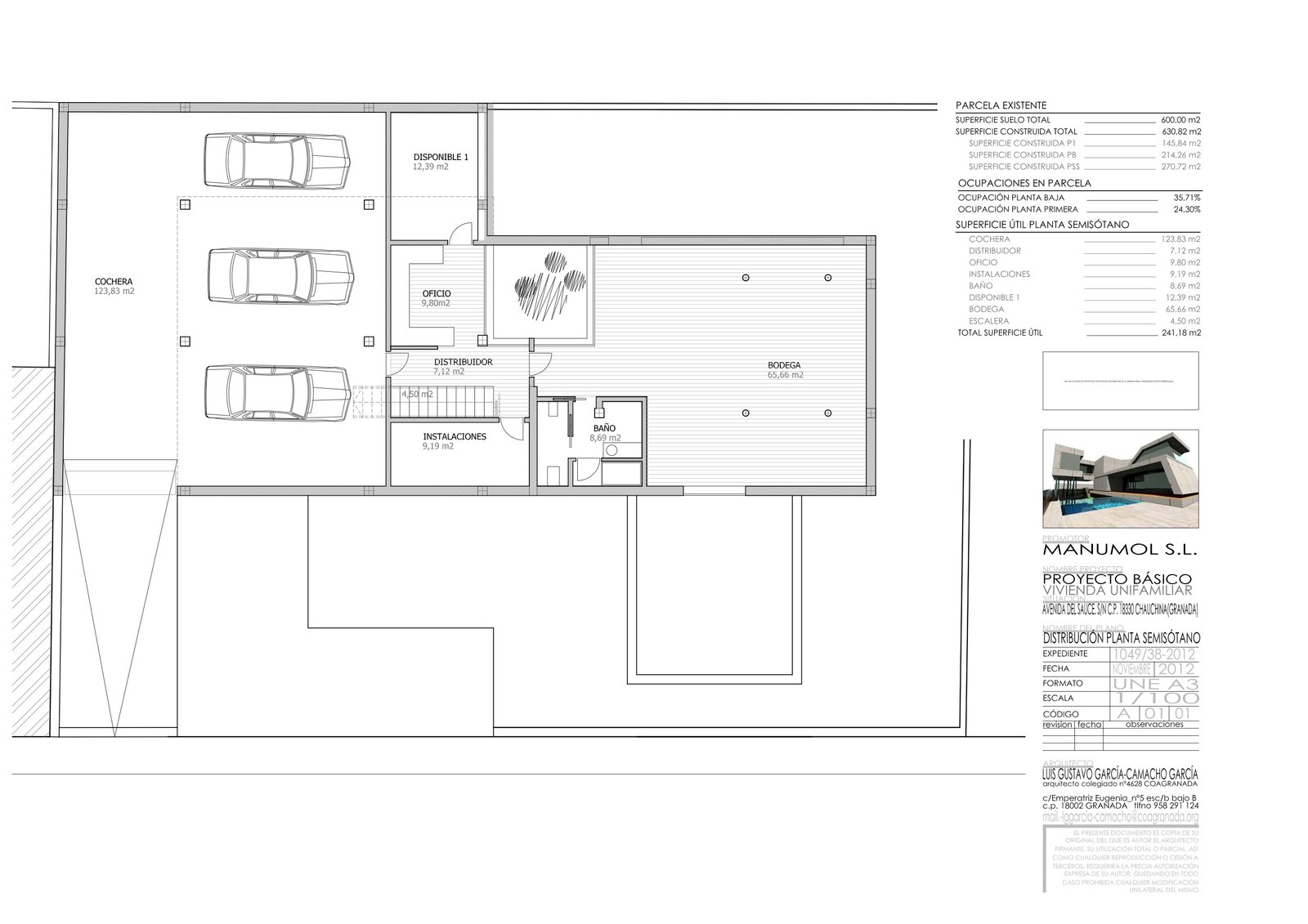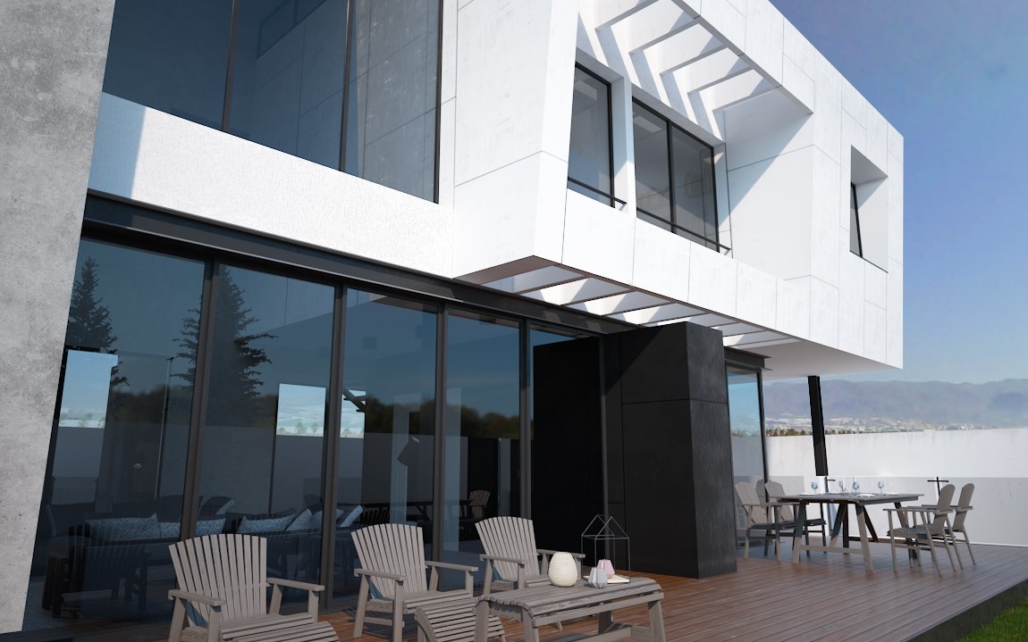 Con dos plantas sobre rasante y una superficie por planta de poco más de 60m2, se decide el aprovechamiento máximo de la parte delantera de la parcela volcando las estancias de salón y cocina a ésta. El acceso a la vivienda se retranquea respecto a la línea de edificación, cualificándose a consta de un distribuidor acristalado con vistas hacia espacio ajardinado a modo de “foto de fondo”.
