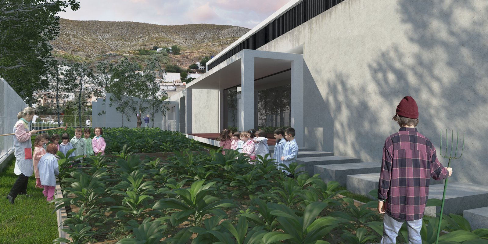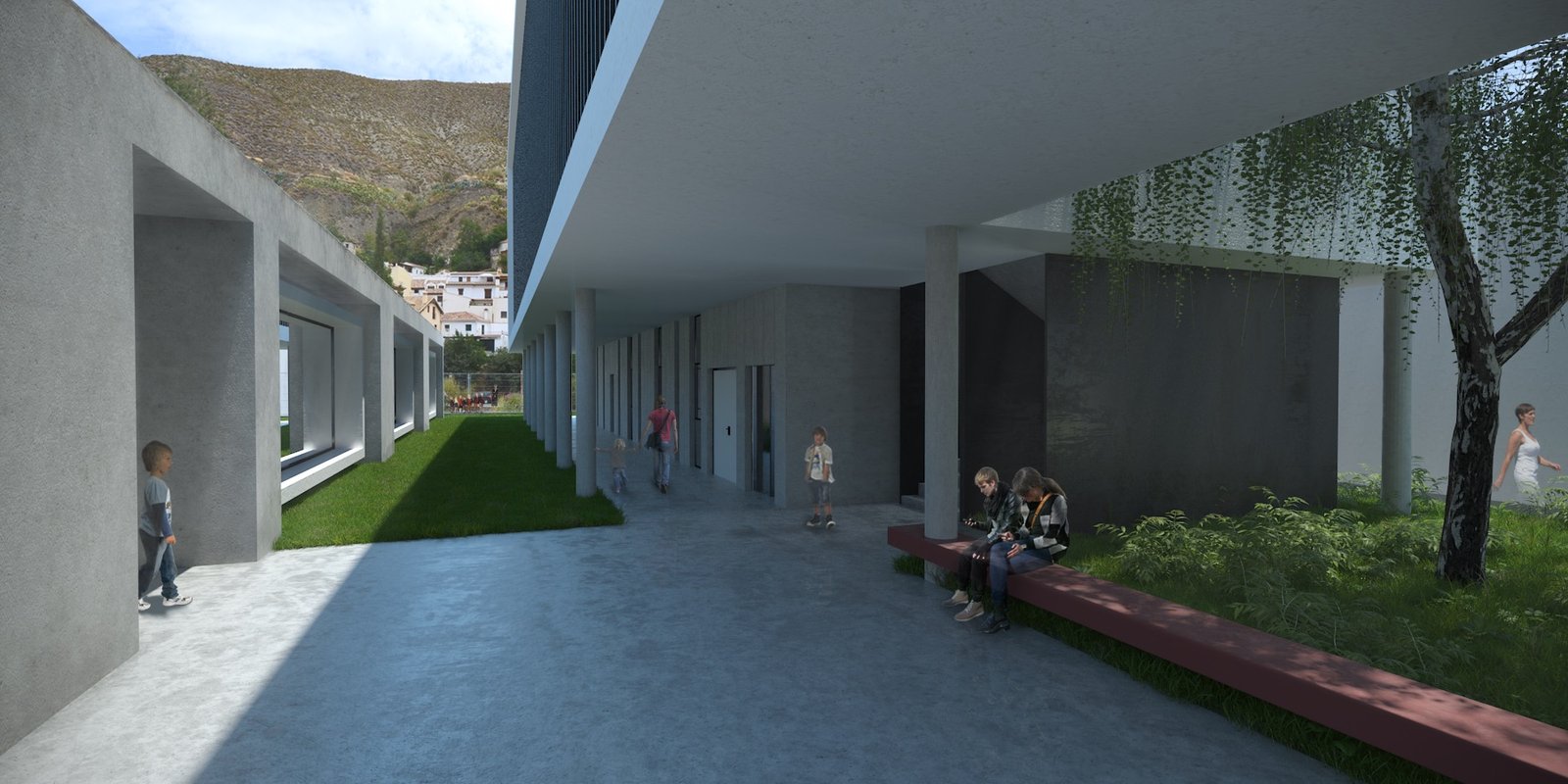 La consolidación del casco histórico de Monachil hace que el municipio se formalice como un núcleo intenso. El enclave en donde se situará el futuro COLEGIO DE EDUCACIÓN INFANTIL se presenta como una zona de transición atravesada longitudinalmente por el río Monachil y bordeada por uno de sus costados por el río Huenes. En este lugar, cualquier vacío adquiere un valor adicional que tiene que ver con la idea de contraste o límite. A este valor se le añade el hecho relevante de ser un vacío urbano con vocación de ser referencia visual. COLEGIO DE EDUCACIÓN INFANTIL