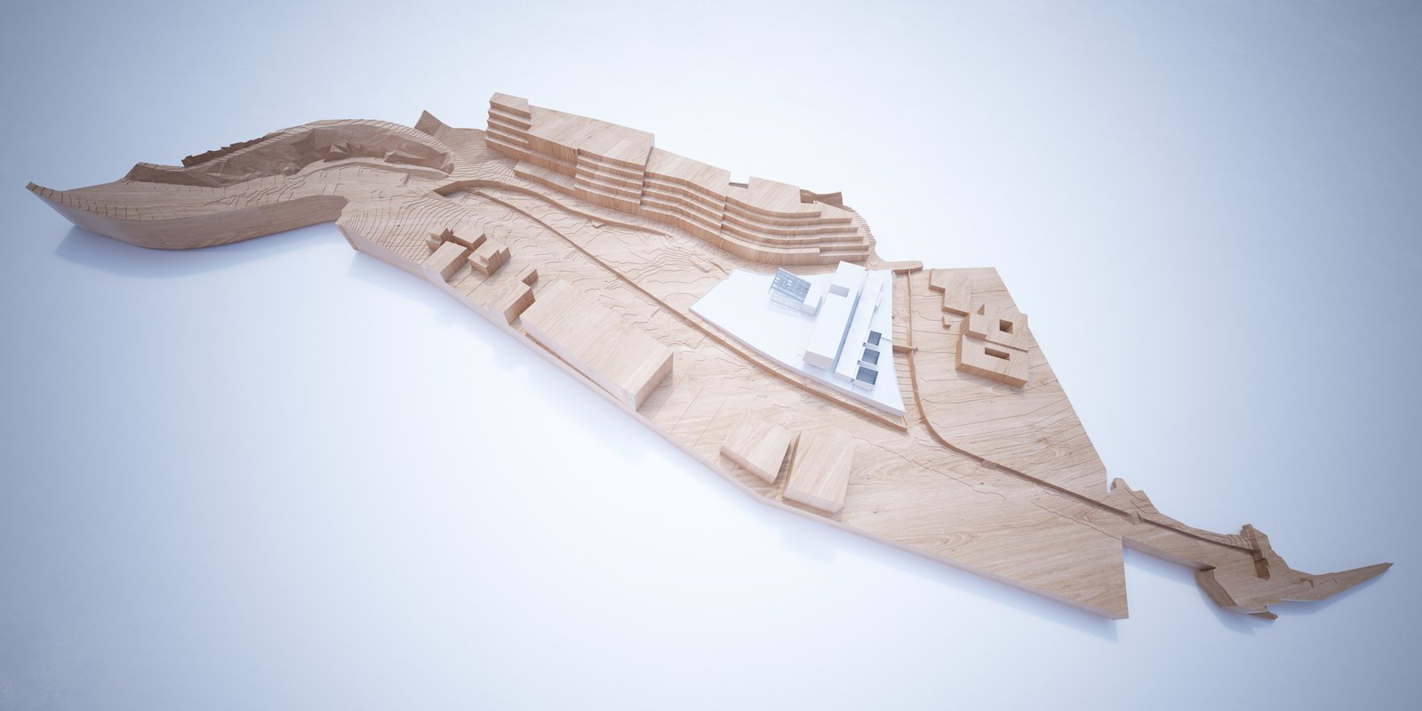 Se propone un centro abierto hacia el paisaje, pero también hacia sí mismo. Un espacio intermedio entre lo construido y lo natural. Cada área funcional se interpreta como zona independiente tanto en su funcionamiento como en su percepción. Las circulaciones se producen a través de espacios ambiguos en donde los flujos se acompañan de zonas ajardinadas y piezas que se mezclan y que dejan introducir soleamiento y aire natural. Los vacíos son nexos de unión. Se persiguen este tipo de intersecciones.